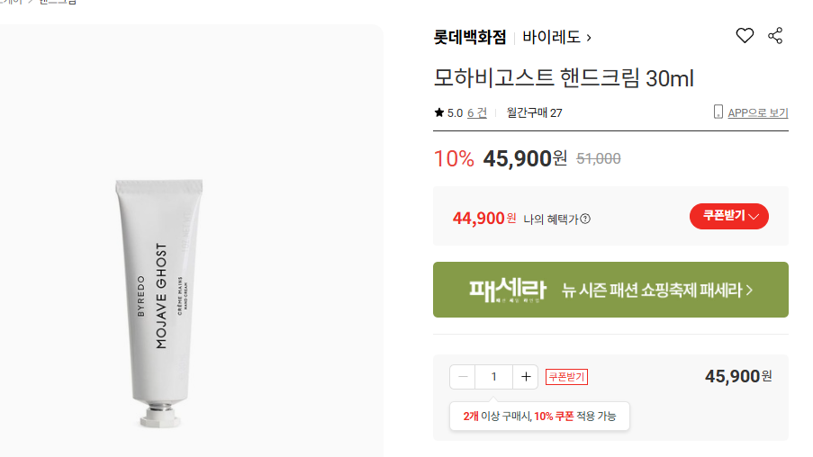 | 제품명 | 바이레도(BYREDO) “모하비 고스트 핸드크림 30ml” |